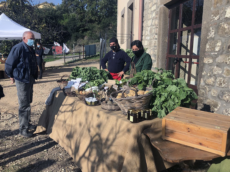 In esposizione e vendita questa domenica i prodotti delle imprese della Tuscia: Fiorucci Giovanni (olio EVO, ortaggi e legumi); “Fattorie Solidali” (olio, conserve di frutta e verdure, ortofrutta fresca), “Pasta Felici” (pasta fresca); “La Culla” di Maggini Giulia (ortofrutta fresca ed erbe aromatiche); Rete “Solcare” (ortaggi freschi, olio, vino, pasta, passata pomodoro, farina, miele e uova), Agriland (ortofrutta), Monchini (pane e farine), Sensi (formaggi di capra e pecora), “Pesano” di Antonio Moretti (salumi di cinta senese); “Ara del Re” (olio EVO biologico, confettura frutta, cosmetici); “Doppi Sensi” (lavanda. olio EVO Presidio Slow Food, legumi, farina, vino), “Perle della Tuscia” (legumi e patate), Apicoltura “La Valle” (miele), Frantoio Presciuttini (olio evo), Fattoria Barbini (olio evo bio, miele, biscotti, ceci), La Zuccona (nocciole e creme spalmabili).
