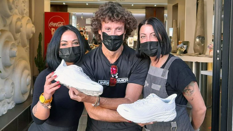 Perché saranno bianche ancora per poco? Perché ci penseranno i viterbesi a "sporcarle": dalle ore 20 di questa sera e fino a venerdì 17 settembre, le scarpe del "runner col cilindro" saranno esposte - grazie alla disponibilità di Andrea Ciancolini - al Caffe Grandori di piazza della Rocca a Viterbo, e saranno a portata di mano dei cittadini che, accompagnando virtualmente Bruno Buzzi nei 42 km della Maratona, vorranno scriverci sopra il loro nome, un pensiero, un augurio, una battuta... Qualsiasi cosa, insomma, per riempire la tela bianca delle scarpe del runner.