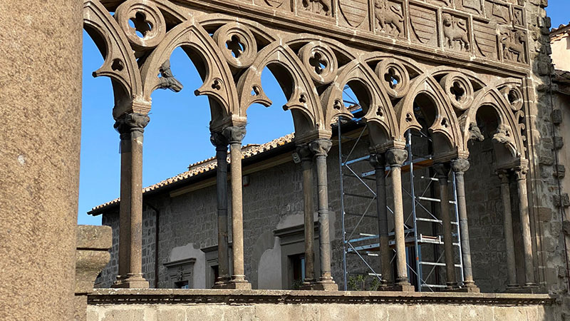 VITERBO - Sono iniziati da qualche settimana i rilievi e gli accertamenti tecnici sulla loggia del Palazzo Papale. Le prime parti attenzionate sono state le “colonnine” ed inoltre sono stati prelevati dei campioni di materiale dalla trave di calcestruzzo per accertarne la qualità e lo stato di degrado dei materiali stessi.