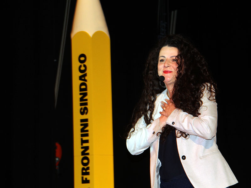 La Frontini prosegue in quello che sembra più un comizio, o una prova di impatto pubblico con la città, che una presentazione vera e propria, avendo davanti le persone che porteranno in giro le sue idee, provando a raccogliere voti. Tante le tematiche toccate, una sorta di sunto di altrettante presentazioni pubbliche, viste in vari posti della città nei giorni e nelle settimane scorse. Si muove da leader, richiama il pubblico che non le risponde, vuole l'approvazione per proseguire, arrivando ad una sorta di sondaggio vero/falso che sembra quasi una professione di fede pubblica.