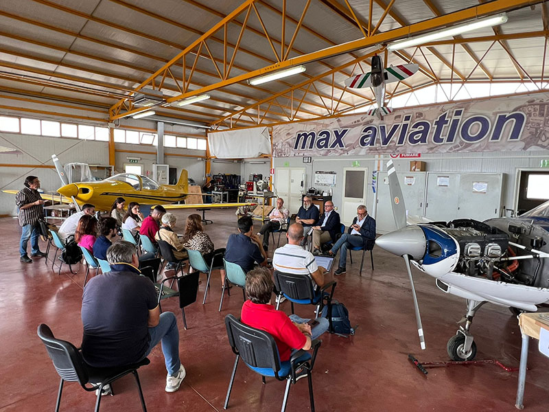 VITERBO - Meno di due chilometri per connettere il territorio al resto del mondo. È questo l'obiettivo, del tutto realizzabile, prospettato stamattina in una conferenza all'Aeroclub presso gli hangar di Max Aviation, con la presenza dei candidati alla Camera di Fratelli d'Italia, Mauro Rotelli e Massimo Giampieri, del presidente dell’Aeroclub Carlo Alberto Taurchini, del vicepresidente Sandro Eleuteri e dell’amministratore della Max Aviation Massimo Testa.