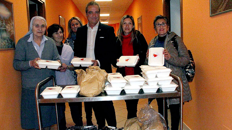 Poco prima di pranzo suor Maria Zeffiro ha aperto le porte della comunità accogliendo il presidente Rotary Club Viterbo, Lamberto Scorzino, accompagnato dalle socie Fosca Mauri Tasciotti e Angela Grifa. Insieme a loro la consegna di 23 pasti completi, che saranno gustati dagli ospiti e dal personale della struttura, tutto preparato dal ristorante Da Saverio di San Martino al Cimino.