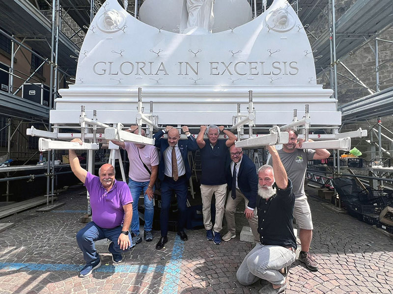 Al termine dell’incontro il Sottosegretario ha potuto raggiungere la macchina di Santa Rosa e conoscere, accompagnato dal Capofacchino ed il Presidente del Sodalizio, ideatore e costruttore oltre che ammirare dal vivo la meraviglia e la maestosità della Macchina.