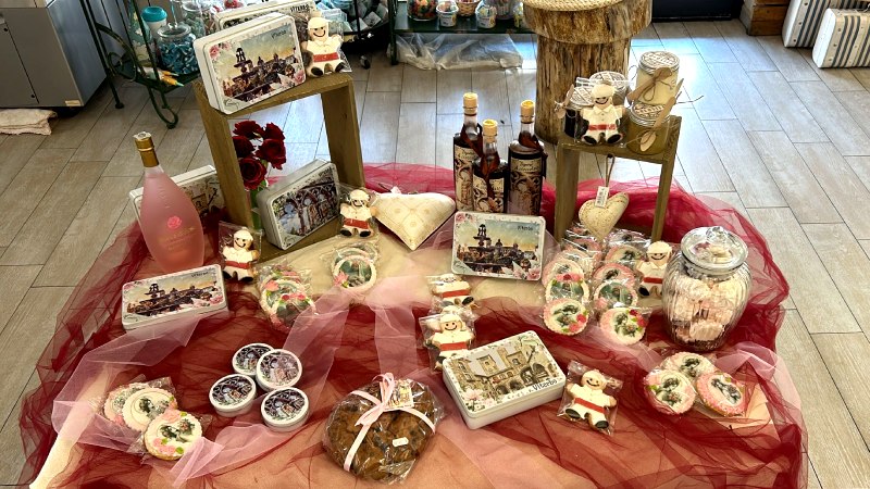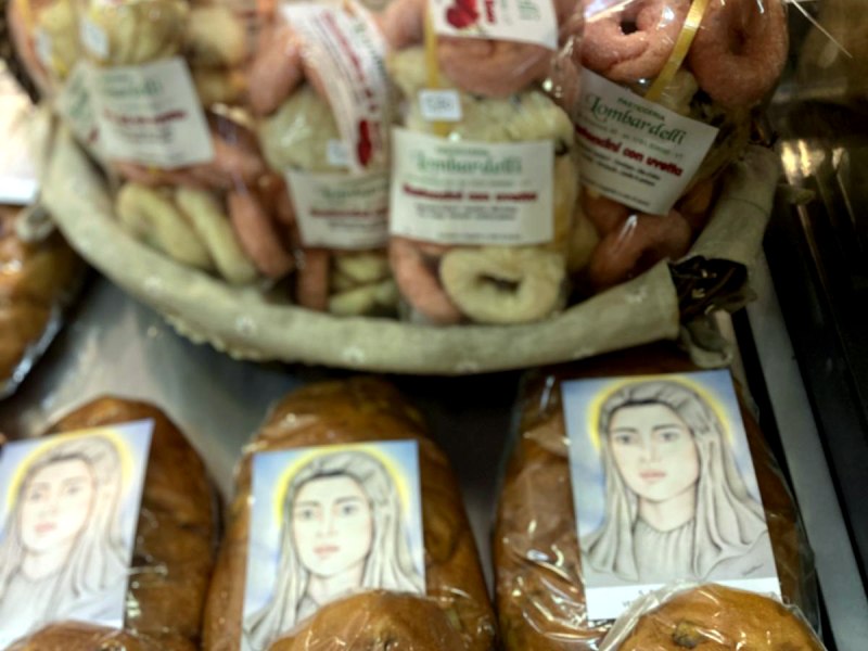 Vetrine di forni e pasticcerie in questi giorni sono addobbati a festa per celebrare Santa Rosa. Non mancano i Facchini realizzati in pasta di mandorle, buoni e anche belli da vedere, dedicati ai cavalieri della piccola Santa, oppure i miracoli di Santa Rosa, che sono biscotti molto gustosi a base di miele e nocciole. Alla pasticceria Casantini, nei punti vendita di via Monte Bianco, via Cairoli (qui la sera del 3 dopo il Trasporto ci saranno anche anche ciambelle e cornetti caldi), La quercia e via del Campo scolastico, sono disponibili anche in confezione regalo. “Abbiamo pensato a delle piccole box di metallo, di diverse dimensioni, con sopra le immagini delle bellezze Viterbo – spiega Katia Casantini – in modo che il cliente possa anche acquistarlo come idea regalo. Per i turisti si unisce l’utile al dilettevole perché i dolci della festa diventano così anche souvenir dalla nostra città”. Tutta la produzione classica della festa è, poi, disponibile presso la pasticceria Lombardelli a piazzale Gramsci. “Facchini, biscotti, pane di Santa Rosa con nocciole, miele, mandorle, noci, uvetta e fichi – spiegano da Lombardelli -, ma anche comode e gustose di ciambelline di Santa Rosa all’anice, da acquistare per sé o da regalare”.