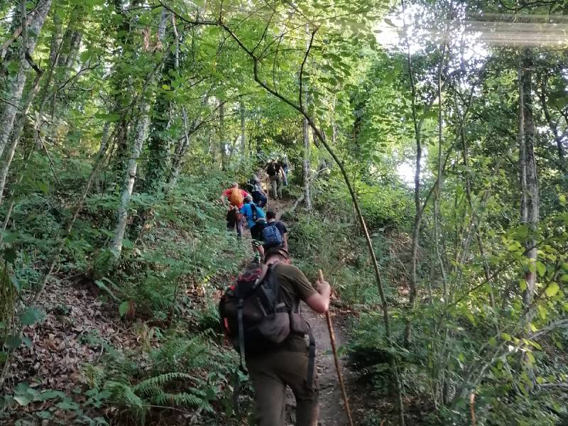 Non una tappa lunga, come di consueto, ma un’ascesa. La prima vera montagna del gruppo. Partenza nel tardo pomeriggio e arrivo in quota (a 802 metri) sulla vetta della Palanzana. Attraverso un sentiero inedito e poco battuto che costeggia e a tratti si sovrappone con la famosa e temuta “direttissima”.