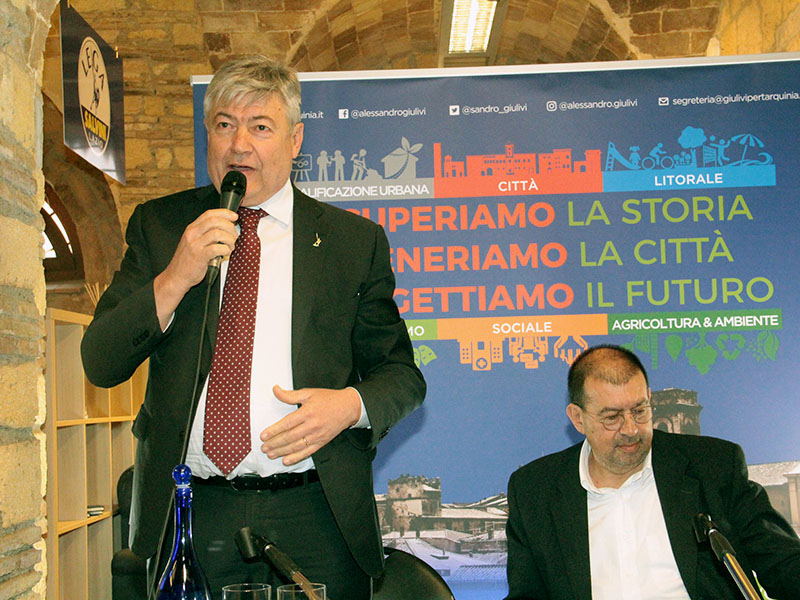 Il programma è ancora in embrione ma le idee sono già pronte: "Per capire cosa serve faccio io due domande, verreste in vacanza in Tarquinia? I vostri soldi li investireste mai a Tarquinia? La risposta ora è no, ma sono no che dovranno diventare si. La città va portata a misura d'uomo, decoro urbano, cura, verde sono i biglietti da visita. Oggi Tarquinia è indecente, anche per il comportamento scorretto di alcuni. Quando avremo una città all'altezza potremo fare promozione, che funziona solo se chi viene si trova bene. Al centro ci saranno turismo e agricoltura, devono viaggiare insieme. Importante anche il centro storico, che deve essere vivo - conclude Giulivi -. Sicuramente si chiuderà, ma in futuro, dopo aver fatto i parcheggi e riportato le aziende in un centro che ora muore".