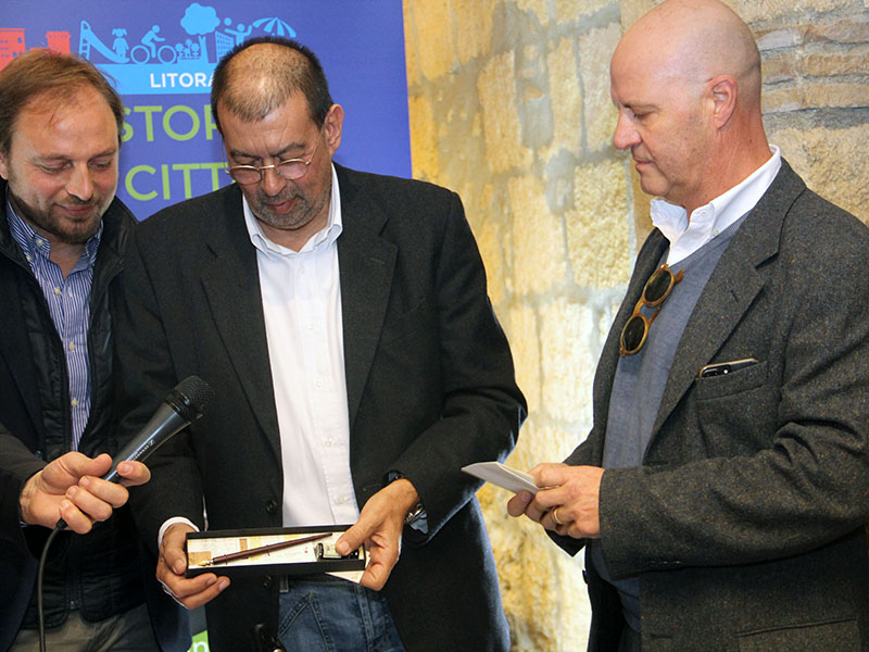 Riceve anche un primo omaggio, è Luciano Bernini, anche lui nella folta delegazione viterbese giunta a Tarquinia per mostrare vicinanza al candidato, che gli regala una penna e una boccetta d'inchiostro, "Ci firmerà il primo atto" spiega il biglietto.