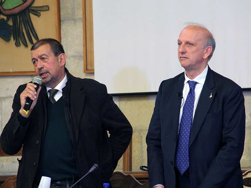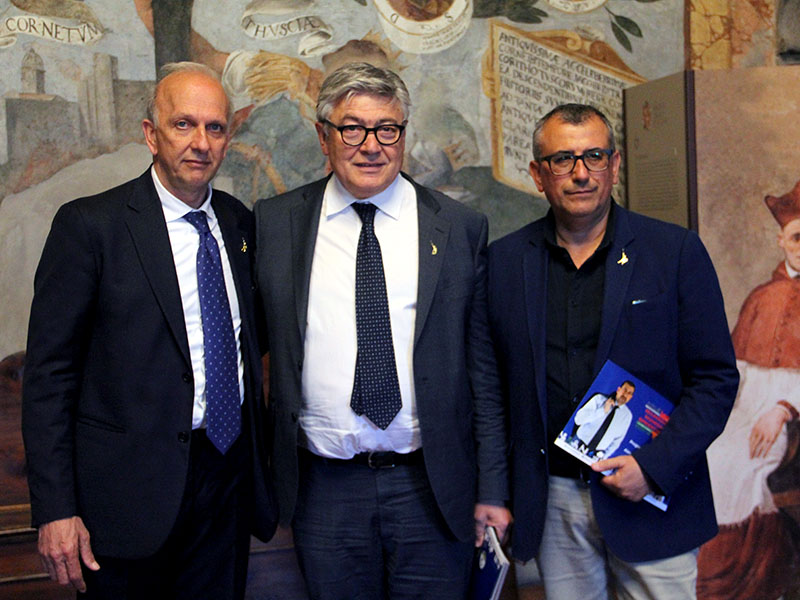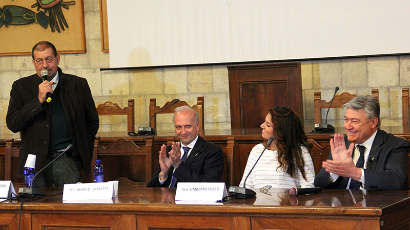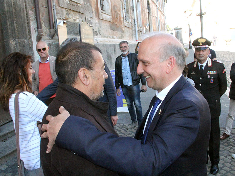 Foto di rito veloci, dal pubblico nessuno ha il coraggio di porre domande, e il tour prosegue in altri Comuni della Tuscia.