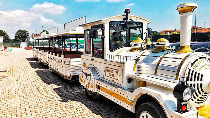 Il trenino, fornito dalla nota ditta Dotto di Castelfranco Veneto (i loro treni turistici sono presenti da quasi 60 anni in oltre 50 paesi di tutti e 5 i continenti), è composto da una motrice e 3 vagoni nuovi di fabbrica, ognuno con la possibilità di ospitare sino a 20 passeggeri (60 in totale); il terzo vagone è accessibile anche alle persone diversamente abili, grazie ad una particolare pedana posta in fondo alla carrozza.