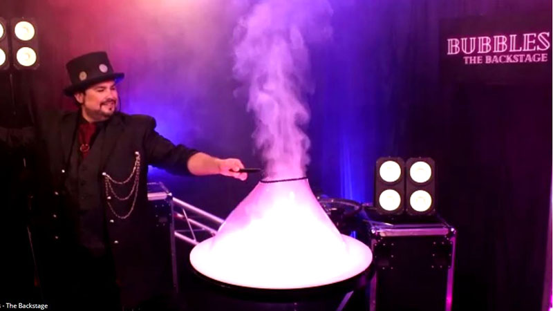 VITERBO - Sbirciare nel backstage del mondo magico e della bubble art: è questa la scommessa di due artisti "dimenticati" in camerino da un anno. Marco Zoppi & Rolanda hanno così portato il pubblico dentro lo spettacolo direttamente dal proprio divano.