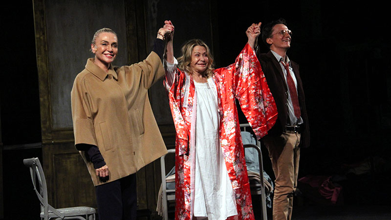 VITERBO - Scene di vita quotidiana sul palco di Ferento: ieri sera tante esperienze di ciascuno di noi sono state protagoniste di "Slot", lo spettacolo di Luca De Bei scritto su misura per Paola Quattrini, Paola Barale e Mauro Conte.