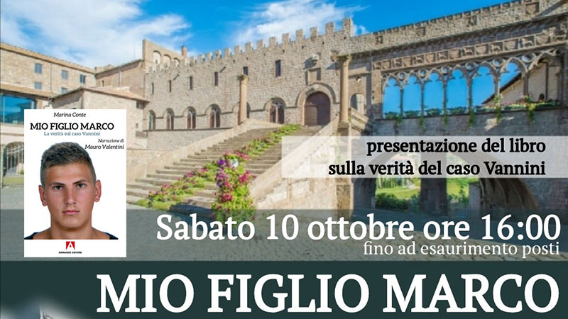 VITERBO - Sabato 10 ottobre, negli spazi della tribuna centrale coperta dello stadio "Enrico Rocchi", a partire dalle ore 16, si terrà la presentazione del libro "Mio figlio Marco", scritto da Marina Conte Vannini con la narrazione del giornalista Mauro Valentini.