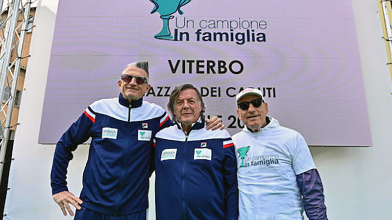 Lo sport come scuola di vita: Panatta, Graziani e Lucchetta giocano con 300 bambini in piazza