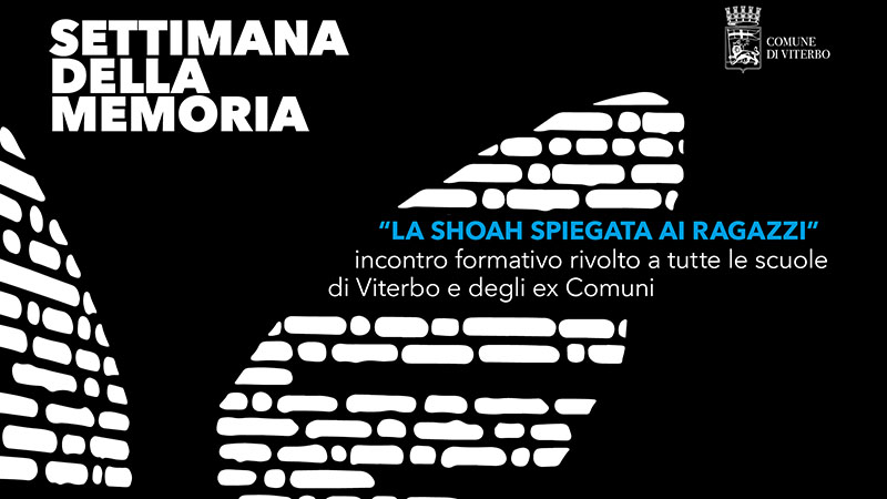 VITERBO - In occasione delle prossime celebrazioni nella settimana della Memoria, Viterbo ricorda la Shoah con due iniziative per la cittadinanza e le ragazze e i ragazzi delle scuole della città.