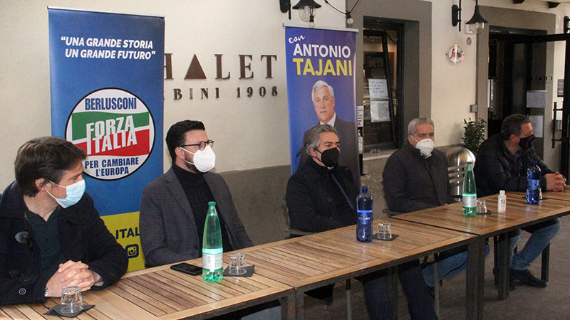 VITERBO - Lo stato maggiore di Forza Italia in conferenza per accogliere Francesco Battistoni, senatore, da pochissimo nominato sottosegretario al Ministero delle politiche agricole alimentari e forestali.