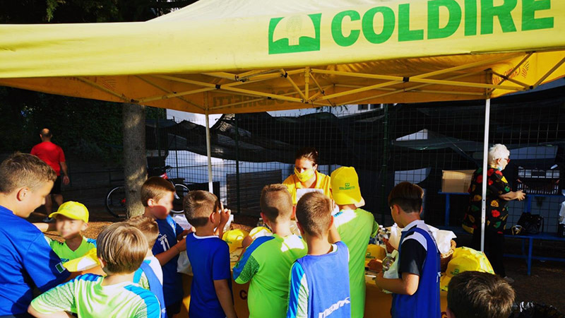 VITERBO - "Mangia bene, gioca meglio": graditissima la merenda sana fornita dalla Coldiretti Viterbo ai giovani atleti, giovedì scorso, al campo sportivo di Santa Barbara.
