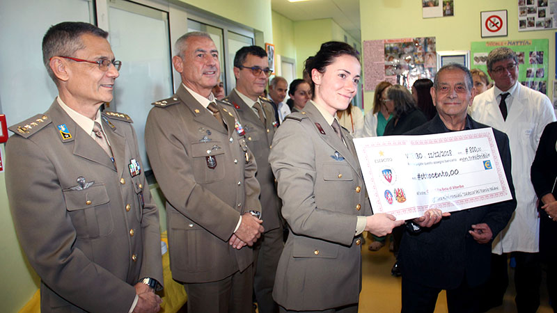 VITERBO – Cerimonia festosa al reparto Pediatria dell'Ospedale Belcolle che ha accolto la consegna del pregevole dono degli allievi Scuola Marescialli Esercito, un importante gesto scaturito dai fondi raccolti durante l'ultima StraViterbo, organizzata proprio dagli allievi del 19° corso della scuola.