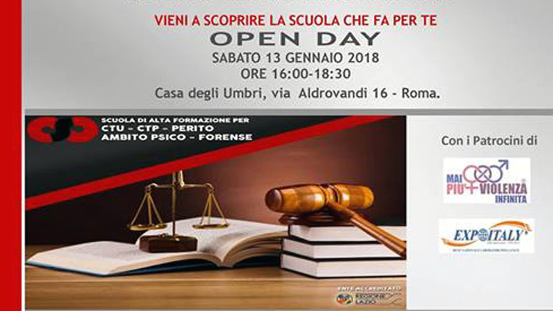 ROMA - Il 13 gennaio 2018, l’Ente di formazione CSC - Centro per gli Studi Criminologici - Dipartimento Psicologia Giuridico Forense, ha organizzato un Open Day presso la Casa degli Umbri, via Aldrovandi 16, a Roma, dalle ore 16:00-18:30 per presentare la ‘Scuola di Alta Formazione teorico esperienziale al ruolo di CTU, CTP e Perito in ambito psicologico forense’, giunta alla V edizione.