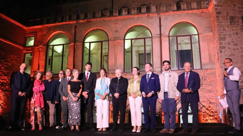 SUTRI - La cerimonia del Premio Efebo 2025 Città di sutri, con protagonisti Prof. Massimo Massetti, primario di cardiologia Policlinico Gemelli; Sandro Pappalardo, presidente Ita Airways; Amedeo Minghi, cantautore; Iole Siena (amm. Arthemisia); Girolamo Bomarsi (imprenditore); Gianni Di Mattia (imprenditore edile).