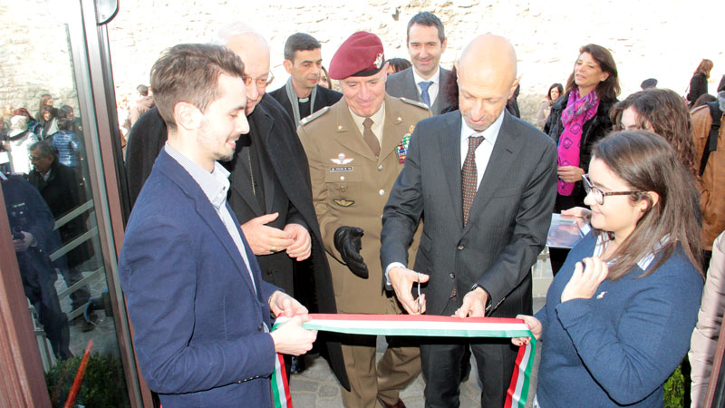 Taglio del nastro con il magnifico rettore Ruggieri e il vescovo Fumagalli, che ha poi benedetto i locali, pensando soprattutto a chi frequenterà i luoghi, gli studenti che si potranno impegnare per costruire un mondo migliore.