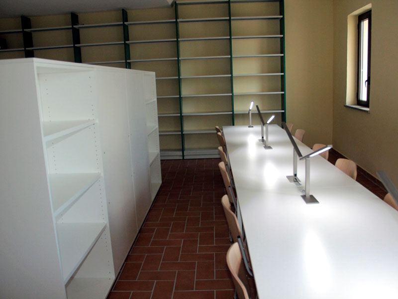 Importanti i numeri: 670 mq di ambiente, sviluppata i 3.400 mc, 3 archivi di deposito libri, allestiti in armati campattabilil per una capienza di 120.000 volumi. Quasi cinque anni dall'approvazione del progetto, un paio per l'effettiva realizzazione.