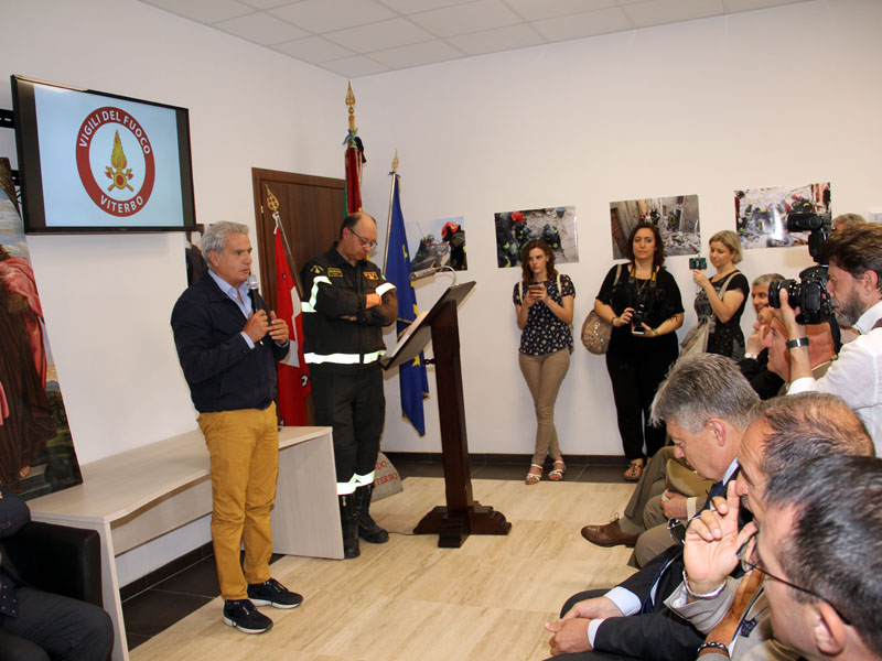 VITERBO - Dopo la trionfale parata dei mezzi e la visita alla centrale operativa concessa alla stampa, questa mattina l'atto ufficiale per la nuova Caserma dei Vigili del Fuoco, inaugurata alla presenza delle autorità civili, militari e religiose.