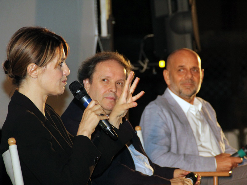 Consegnato il premio è Magrelli a guidare l'incontro, non prima di aver fatto salire sul palco il regista (e marito di Paola) Riccardo Milani.