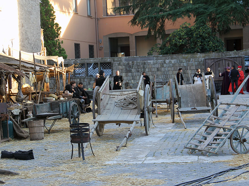 Le riprese proseguiranno anche domani, e poi si sposteranno a Caprarola, Palazzo Farnese.