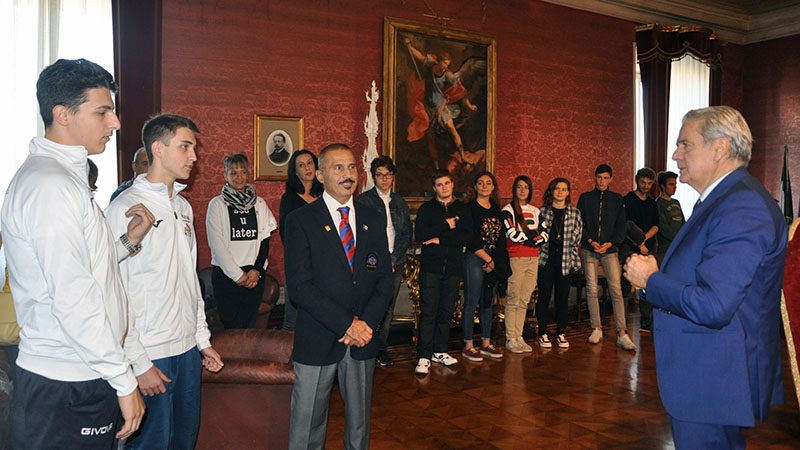 VITERBO - Il sindaco Giovanni Maria Arena ha incontrato i campioni di karate Matteo Plantera e Walter Mastromichele, vincitori di numerose medaglie in occasione del 9° Campionato mondiale di karate, svoltosi allo Zenit Arena di San Pietroburgo, in Russia, dal 28 al 30 settembre.