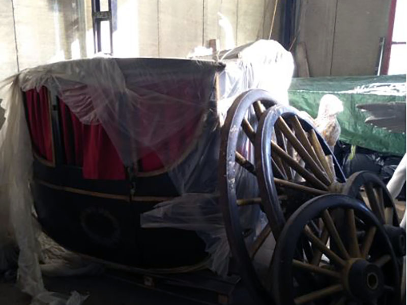 Alle operazioni erano presenti le restauratrici di Tessili Antichi, la onlus che si occupa di costumi e tessuti storici e che nel 2008 ha restaurato il mantello del postiglione, che nel XIX secolo guidava la carrozza, ora conservato nel Monastero di Santa Rosa. Magari, in futuro, i due oggetti potranno tornare vicini.