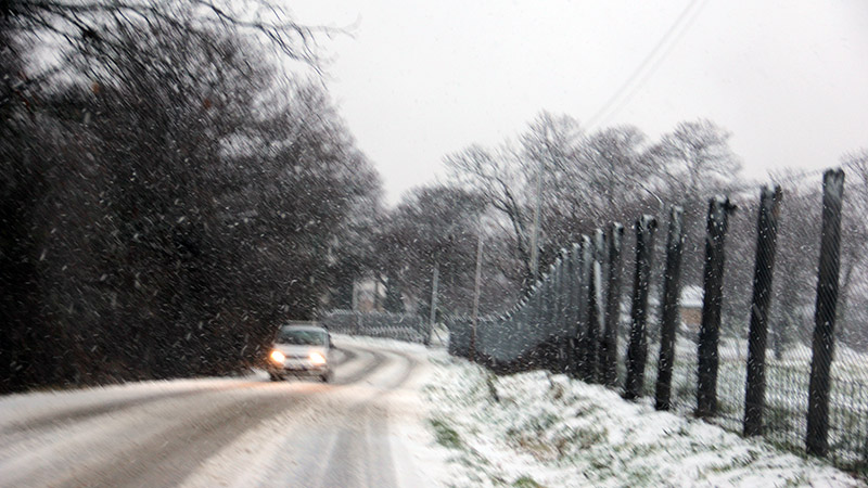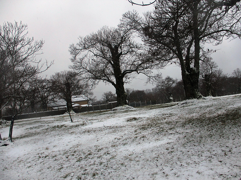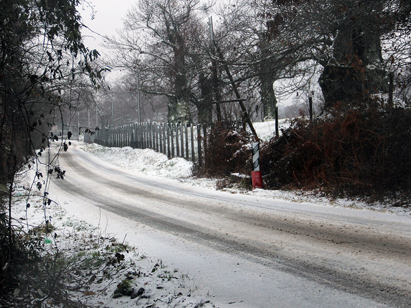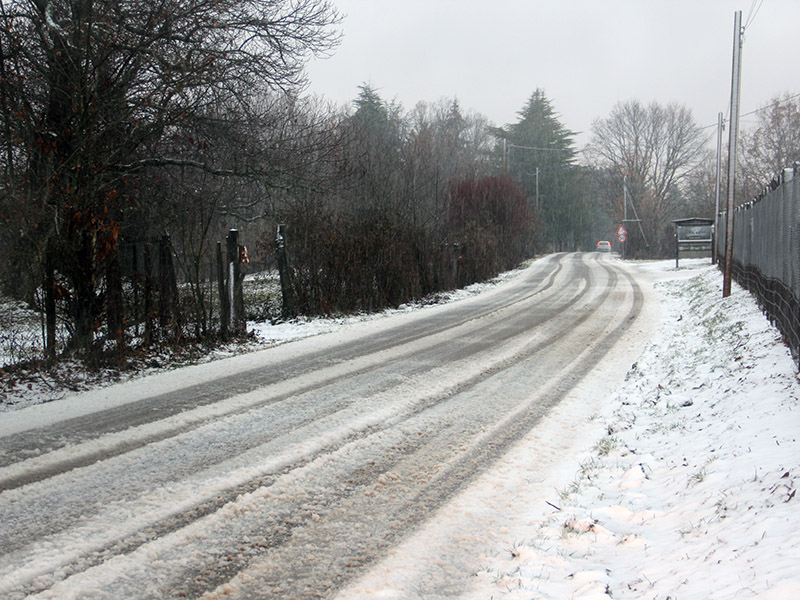 Intanto si parte da qui, come mostrano le foto lungo strada Romana, dove nel pomeriggio la neve ha imbiancato strada e castagneti.