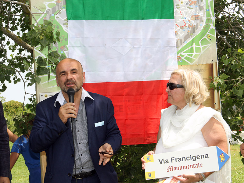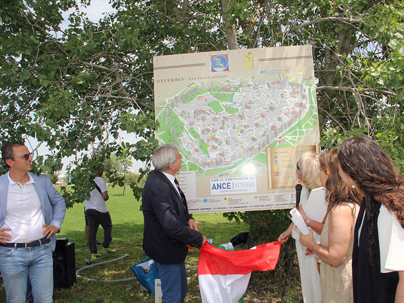 VITERBO - La via Francigena come promozione del territorio e soprattutto la città dei papi in supporto dei pellegrini che quotidianamente l'attraversano. Si aggiunge la segnaletica fortemente voluta dalla professoressa Alessandra Croci, che da anni lavora al progetto anche con l'aiuto dell'ex consigliere regionale Sabatini, oggi supportata da Ance Viterbo, Banca di Credito cooperativo di Roma, Comune di Viterbo e un nutrito gruppo di commercianti viterbesi.