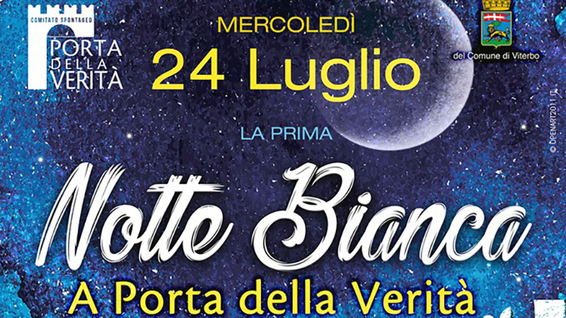 VITERBO - Il prossimo mercoledì 24 luglio si accendono i riflettori su Porta della Verità, organizzata dal organizzato dal comitato spontaneo che ne porta il nome. Per ridare energia alla vita del centro storico arriva un'altra iniziativa interessante: La notte bianca della Verità.