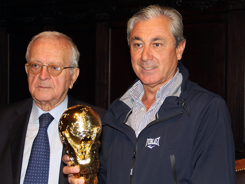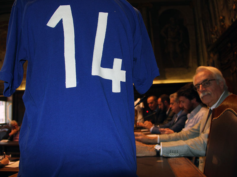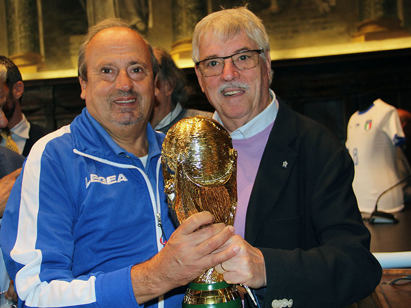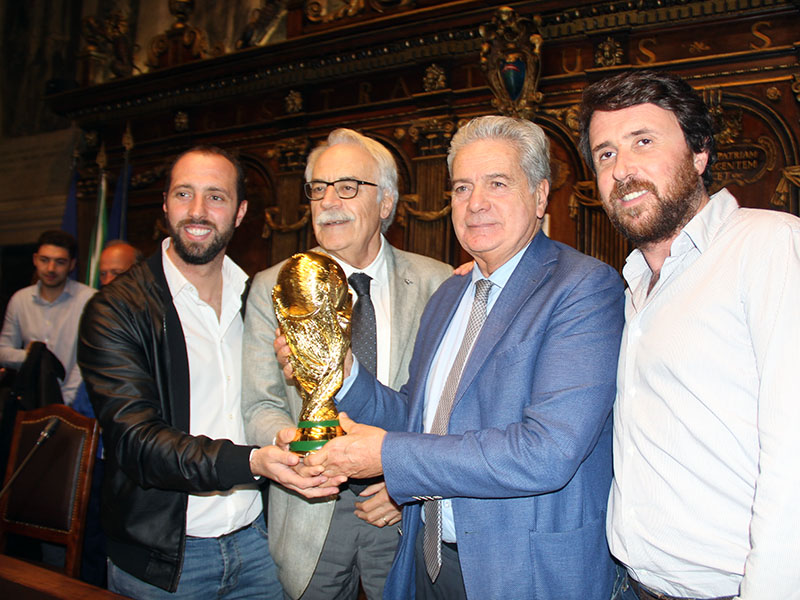 La presentazione questa mattina a Palazzo dei priori, con protagonista l'amministrazione, Alessandro Pica, capo delegazione rappresentativa nazionale under 16, e Mauro Grimaldi, consigliere delegato Federcalcio. Presente anche l'ex azzurro Franco Piccinini. Sul tavolo della giunta tre preziosi cimeli: la copia perfetta della Coppa del mondo vinta nel 2006, la storica maglia azzurra del 1970, i tempi di "Italia - Germania 4 a 3", la numero 14 indossata da Rivera, la maglia azzurra di Verratti indossata nel giorno della triste ricordo di Astori.