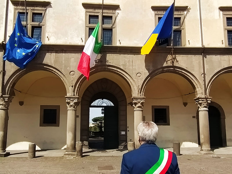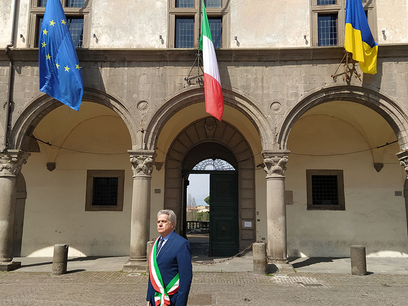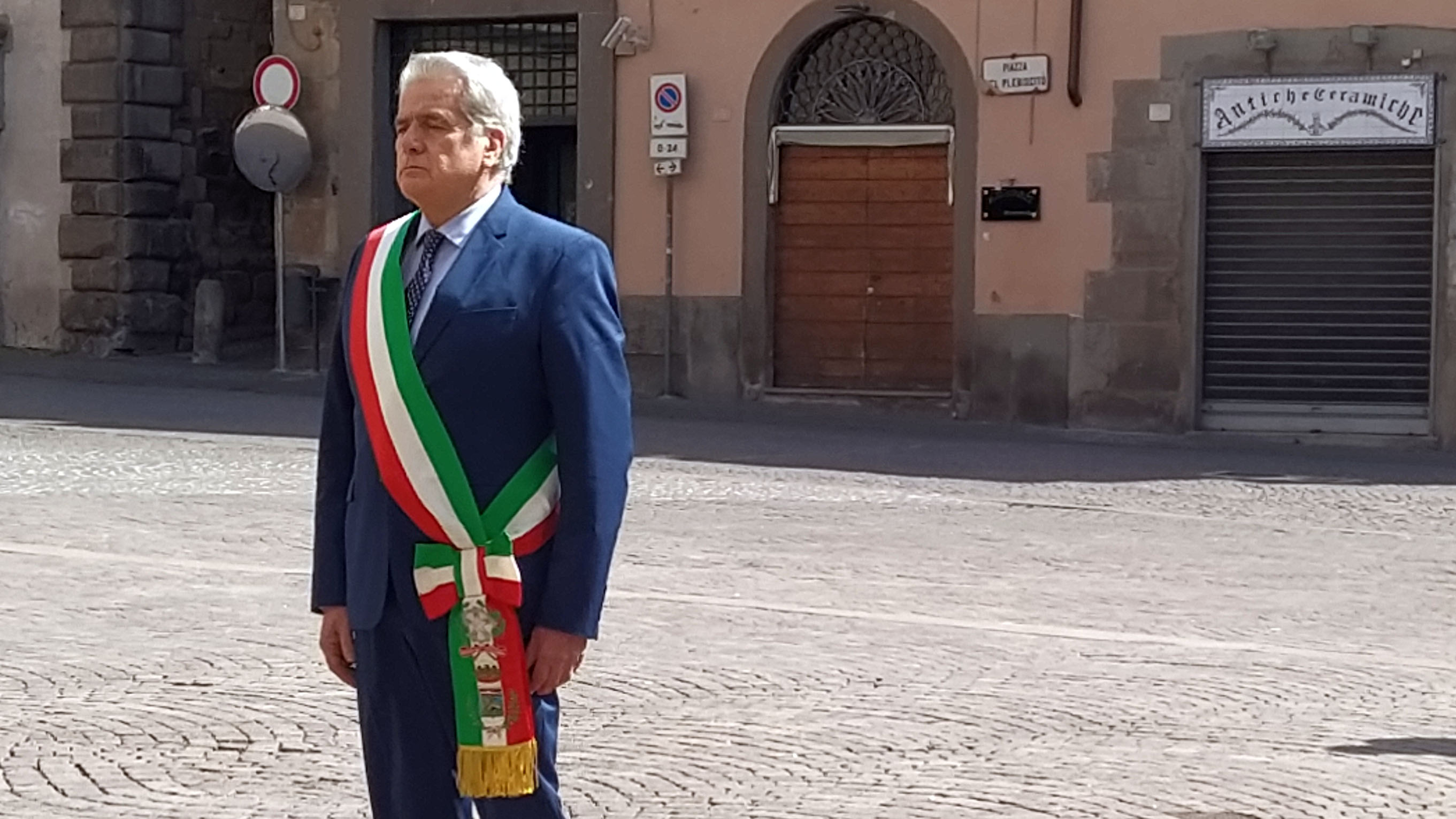 VITERBO - Celebrato il minuto di silenzio in piazza, davanti l'ingresso del giardino di Palazzo dei Priori, con il sindaco Arena in fascia tricolore.