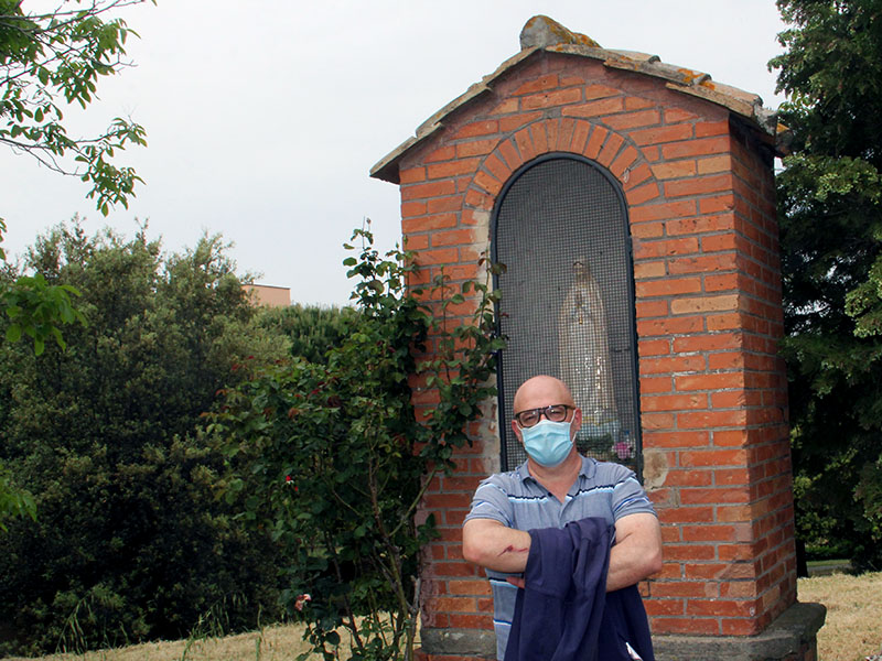 All'ingresso del boschetto i turisti saranno accolti da un'edicola curata dalla famiglia Ciorba, che, come ci racconta Remigio: “E' stata voluta da mia nonna Giulia quando costruirono le 'case minime', un dono alla parrocchia di Pianoscarano. Per anni si era persa e qualcuno aveva anche trafugato la Madonnina all'interno. Quando ho compiuto 50 anni ho chiesto donazioni per recuperarla e restaurarla, grazie ai miei amici abbiamo acquistato una Madonnina in ceramica e sistemato l'edicola, che ora veglierà sugli ospiti”.