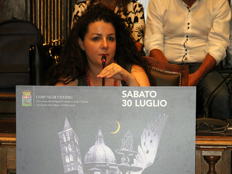 La serata è stata presentata dall'assessore Franco: "Sfato un piccolo equivoco iniziale, non è una notte bianca, non ci interessano i singoli eventi ma una serie di passi che portino alla rinascita e allo sviluppo del centro storico. Invitiamo i negozianti a tenere aperto ma soprattutto i viterbesi a frequentare il centro per socializzare. Ci sarà animazione nelle vie del centro con artisti di strada, piazze con musica, a largo Fani una cover di Vasco, in piazza della Repubblica un djset, mentre piazza del Plebiscito avrà un accompagnamento con brani degli anni 70-80-90. Non sono concerti - ha concluso - niente palchi ma intrattenimento per allietare e favorire le passeggiate. Per quanto riguarda la cultura, la Diocesi terrà aperte le chiese lungo il percorso interessato, quindi Corso italia, via Marconi, via Saffi e via Roma per permettere a tutti di ammmirare i monumenti e le bellezze interne, mentre dal canto nostro terremo aperto il polo museale di Palazzo dei Priori. Non c'è un programma fisso ma solo un modo per condividere il centro".