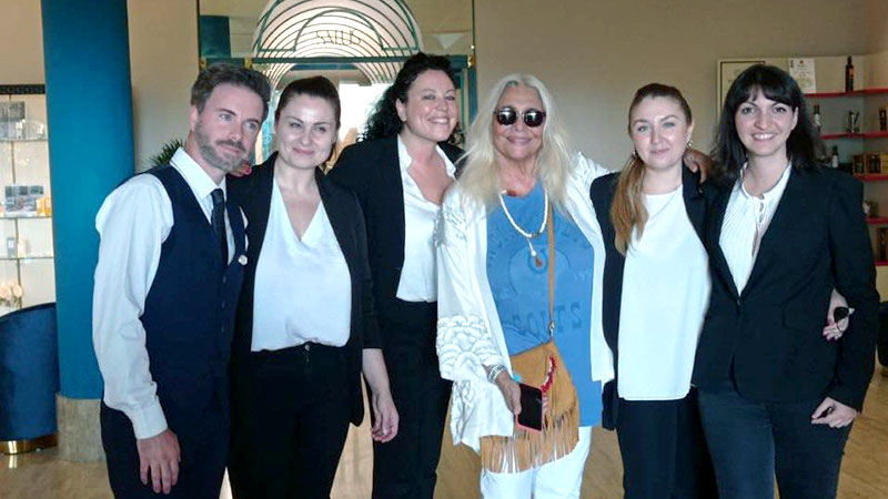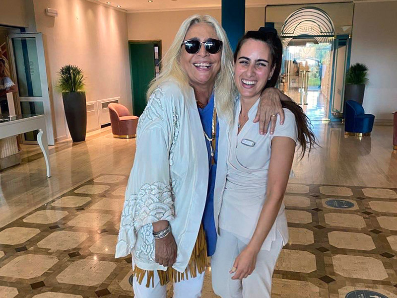Più istituzionale la comunicazione dell'Hotel Salus Terme, che ha scelto la pubblicazione sulle proprie pagine social degli scatti con la "zia" di tutti gli italiani, Mara Venier, con lo staff accoglienza e il personale.