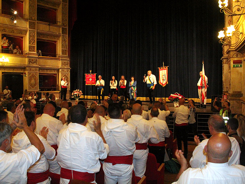 Tutto è iniziato a fine incontro, poco prima dell'uscita dei Facchini. Sandro Rossi prende il microfono e non riesce a parlare. La soilta emozione, pensiamo tutti. Poi apre bocca, e tira fuori tutto quello che ha dentro: "Parlo a nome del Sodalizio, siamo tutti uniti e così non va bene. Abbiamo fatto il giro e a piazza Fontana Grande, dove ci vanno sempre 2 mila persone, ce ne saranno 200, tra tribune e sedie, che sono distanziate di 2 metri, molto peggio del covid. Vogliamo parlare di piazza del Comune? Potrebbe essere anche peggio, per non parlare di piazza Verdi, con via Rosselli che anziché accogliere migliaia di persone in salita è occupata dalla tenda della Protezione Civile... si sono fatti la postazione privilegiata. La nostra benzina sono i fedeli, il pubblico, sono loro che ci danno la forza di tirare su la Macchina e andare, senza quella benzina, gli applausi, non abbiamo le forze. Capisco la sicurezza, ma sono giorni che dico di cambiare e niente, non è successo. Se stasera, uscendo dal Santuario, quando andiamo a prendere la Macchina a San Sisto, vedo piazza Verdi con quattro persone chiamo il sindaco e vi annuncio... la Macchina non passa".