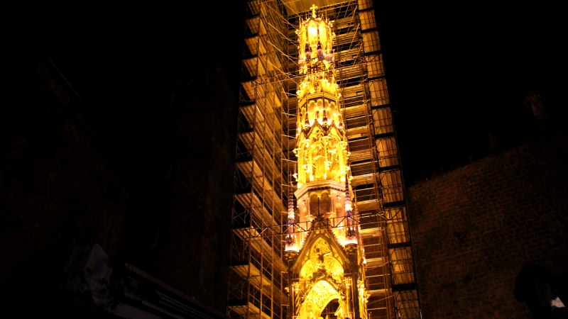 E' sempre interessante, però, ascoltare il racconto della sua creazione da Raffaele Ascenzi, che, soprattutto ai piedi di questa sua terza opera d'arte, non smette di confermare o aggiungere particolari. Se poi la serata è quella dell'accensione davanti agli occhi di tantissimi viterbesi l'emozione fa aprire ogni cuore.