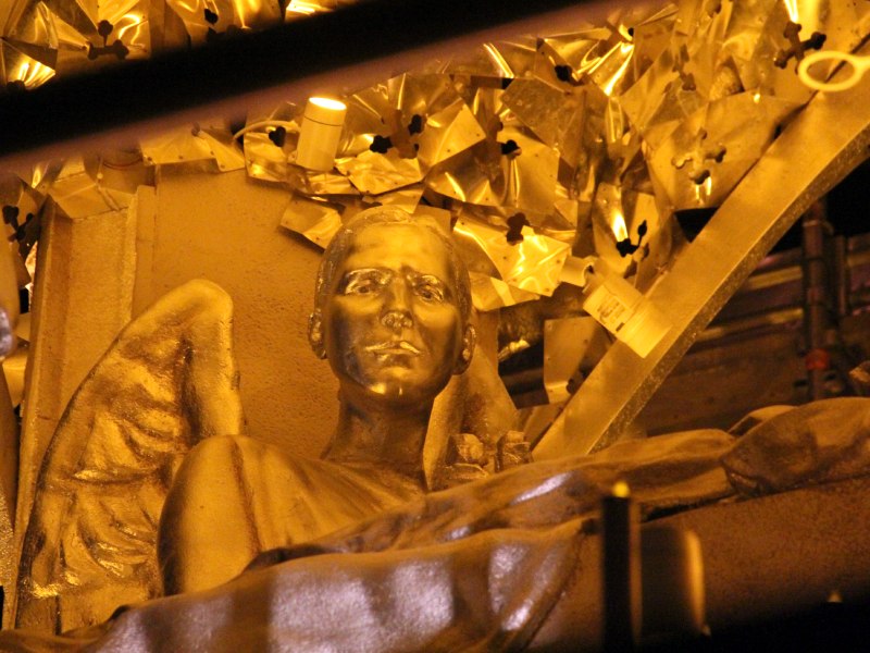 Nicoletta, una scomparsa che ha lasciato il segno nella famiglia Ascenzi e che ritorna sempre nei loro ricordi. C'è anche lei sulla Macchina, le cui statue sono state realizzate con uno scanner 3D che ha dato forma alle riproduzioni da inserire su Dies Natalis. E infatti, prosegue l'architetto: "Uno degli angeli la riproduce, nella parte più bassa, dove riposa Rosa. E' il primo angelo, ed è stato possibile farlo attraverso l'opera di un amico, Davide Dormino, che grazie alla creta ha realizzato la statua riproducendo il volto di Nicoletta. La statua è stata così scannerizzata come accaduto con le persone vere (tra cui è presente la moglie Valeria e i figli, ndr) ed oggi la rivedo nella posizione che avemmo noi, davanti a lei senza vita, mentre ora è lei che guarda Rosa e noi. Una scena, quella del saluto terreno, che si trova leggermente più in alto rispetto all'altezza della visione umana; la scelta di far vedere solo i piedi, davanti, e il cuscino, dietro, è voluta, perché quel momento è un fatto privato, intimo, che ciascuno di noi ha sicuramente vissuto esattamente così".