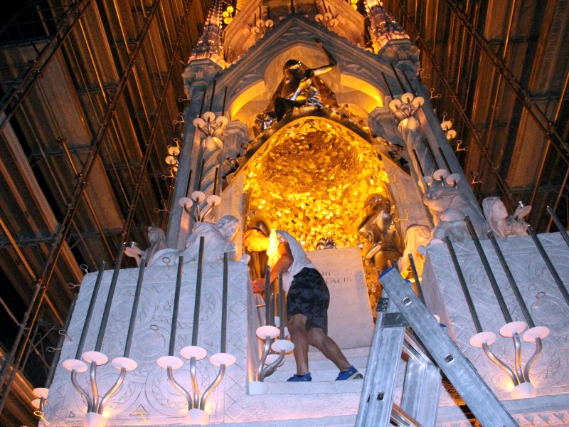 Prima di lasciarlo ai tanti che lo reclamano c'è tempo anche per sviscerare il vero concetto della posizione di Rosa, che è riprodotta tre volte, la prima nel suo passaggio dalla terra al cielo, il suo Dies Natalis, poi nel viaggio con gli angeli verso l'alto e infine in cima, ma con una posizione diversa dal solito, che torna all'antico, quando sopra la statua era sempre presente un crocifisso: "Non è stato semplicemente lo spostamento della Santa per inserirla nell'architettura, ma esaudire il suo desiderio - spiega Ascenzi - . Rosa va in sogno al Papa Alessandro IV e chiede che sia riesumato il suo corpo, allora sepolto alla Crocetta, per essere traslata nel convento di clausura, una dimensione intima, il suo desiderio era entrare in convento e chiede di tornare in Chiesa per entrare in contatto con Dio ed essere da Lui protetta. Quell'immagjne all'interno della Chiesa è semplicemente realizzare il suo sogno".