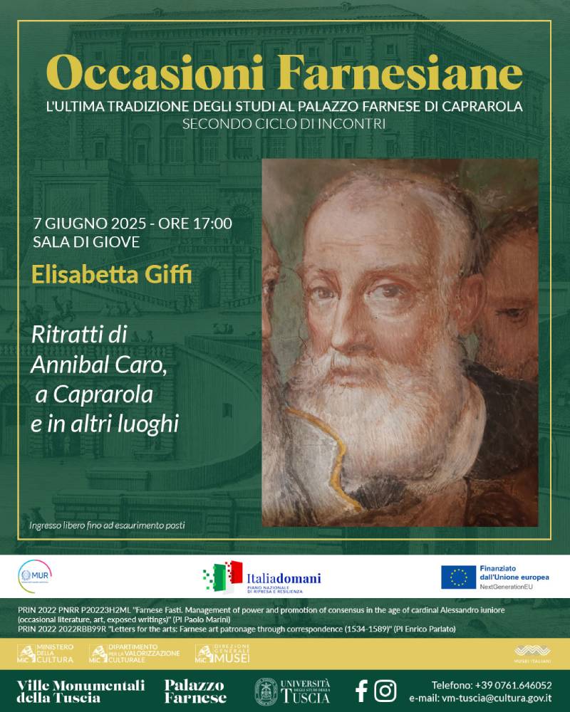 Il prossimo appuntamento con le "Occasioni farnesiane" è in programma sabato 7 giugno alle 17.00 sempre a Palazzo Farnese, con ingresso gratuito. Sarà la volta della storica dell’arte Elisabetta Giffi, che si confronterà col tema dei ritratti di Annibal Caro presenti nel palazzo di Caprarola e in altri importanti contesti farnesiani.