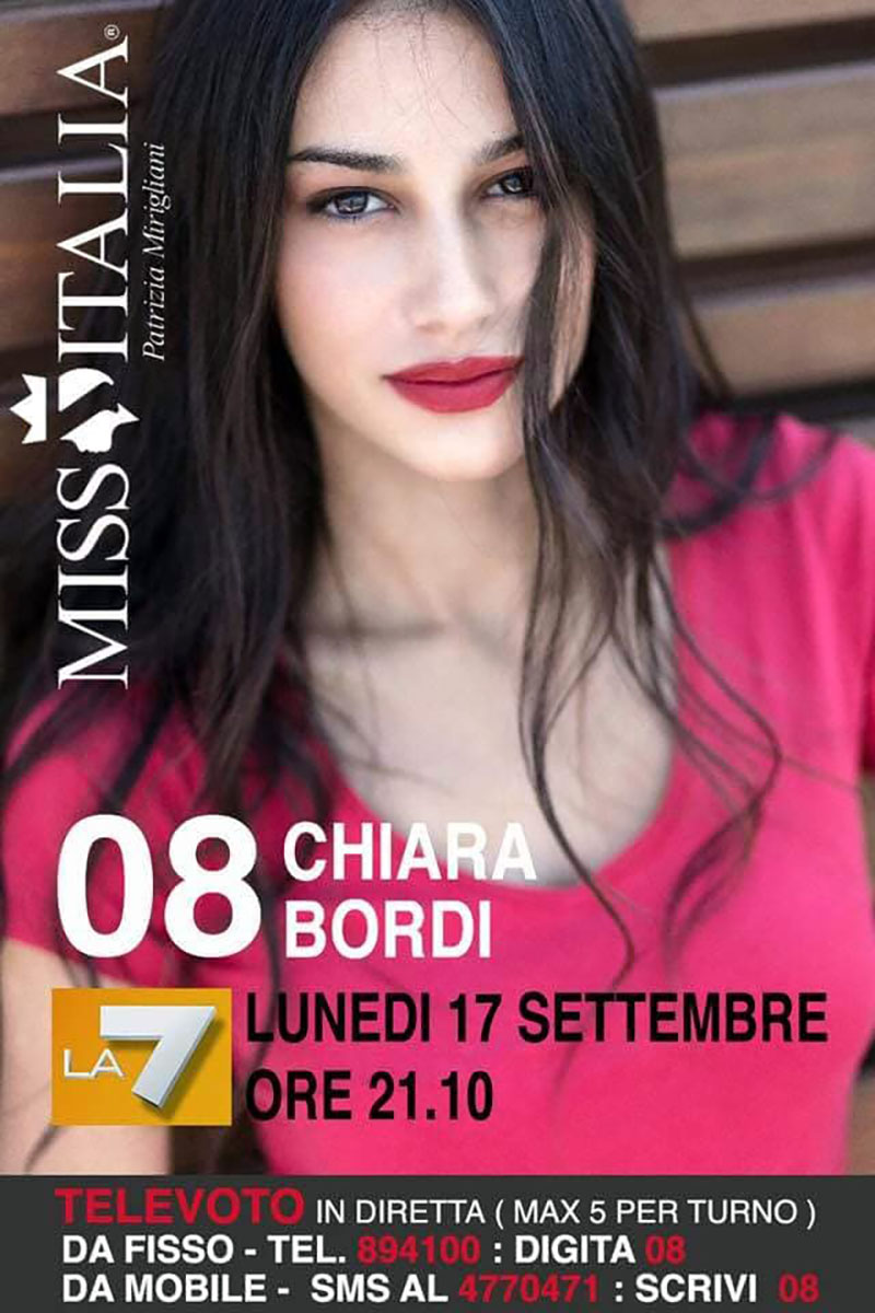 E' lei, si è presentata benissimo da sola, e il 17 settembre ha bisogno della spinta di tutti, perché la Tuscia, e di nuovo il litorale, abbia una Miss Italia dopo Alice Sabatini. Il televoto la aspetta, il suo numero è 08, e anche se ha detto che non le interessa vincere... a noi si che interessa. Carissima Chiara, oggi più che mai il mondo sano, con cuore e sale in testa, sarà con te.