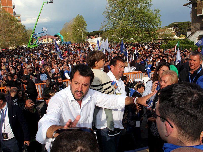 Inizia l'intervento del leader della Lega, prettamente nazionale, che parte dall'agricoltura e dalla necessità di mangiare italiano, invitando quindi al voto per le europee, dedicando un passaggio a Giulivi: "E poi abbiamo bisogno di sindaci in grado di fare regole che mettano prima gli italiani in difficoltà e poi gli altri. Vi ringrazio per questi 300 metri fatti insieme - precisa Salvini - mi piacerebbe sapere se Renzi ha mai avuto questo". Torna così alla politica nazionale, criticando i sindacati, che "nel Primo maggio sono in piazza, ma dov'erano quando venivano approvate la Fornero il il Jobs act?". Poi elenca i provvedimenti governativi, dagli sbarchi ridotti del 93% alla legge sulla legittima difesa, cita i casi di cronaca, partendo dall'ultimo di Monterotondo "ai fenomeni di sinistra che dicono che avrebbe potuto fare a meno di sparare - aggiunge - io dico che se entri in casa mia io mi muovo prima, per difendere i miei figli" e poi torna sulla giustizia, reclamando una riforma che la renda certa, con responsabilità ai giudici, per evitare casi come quello di Marco Vannini. "Arriva un'altra inchiesta per un barcone sequestrato, sappiate che io continuo, con questa politica abbiamo dimezzato il numero dei morti in mare. E a chi mi parla di droga dico solo: galera agli spacciatori e ancora - andando sul caso appena avvenuto a Viterbo - castrazione chimica a pedofili e stupratori, perché se sei malato devi essere curato. A questi pervertiti, oltre alla riabilitazione, serve anche una cura".