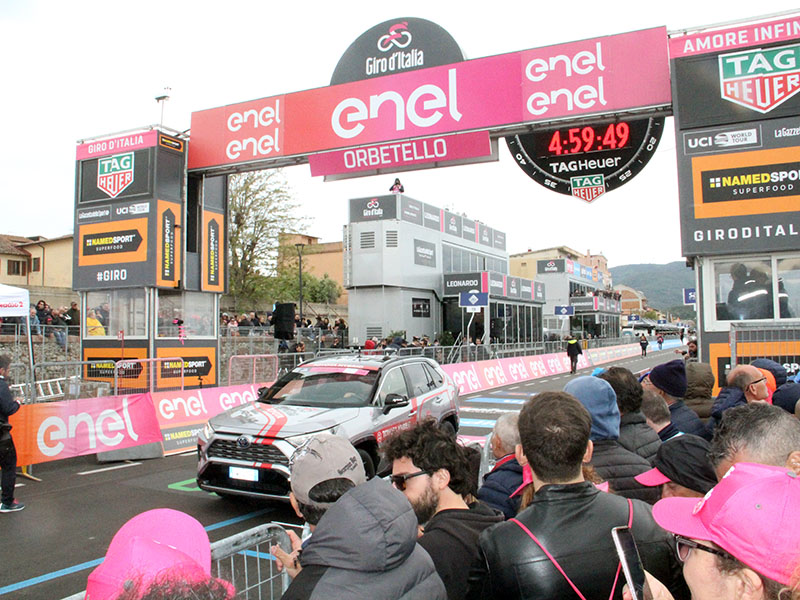 Una freccia rosa, veloce e senza soste, in questa quarta tappa, mentre la terza, con arrivo ad Orbetello è stata contrassegnata dalla presenza del Presidente Tajani, che ha consegnato sul podio la maglia ciclamino, accompagnato dal senatore Battistoni.