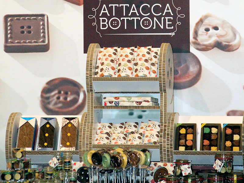 Durante Eurochocolate, la centralissima piazza Matteotti si trasformerà in una sorprendente Piazza dei Bottoni realizzata in collaborazione con Icam Ciocopasticceria, FBM, Cabrellon e Pavoni. Tutti i giorni del Festival, con orario continuato dalle ore 10 alle 20 e il Sabato fino alle 22, i visitatori potranno entrare in questo coloratissimo laboratorio e realizzare con le proprie mani tanti dolcissimi bottoni di cioccolato da portare a casa insieme allo stampo in silicone, oltre a scoprire la grande merceria a tema cioccolato con protagonisti i nuovi prodotti della linea #attaccabottone by Costruttori di Dolcezze.