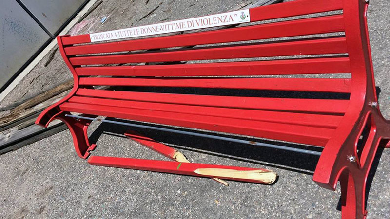 VITORCHIANO - Divelta la panchina rossa in piazza Umberto I, un gesto assurdo per un simbolo come quello della lotta contro la violenza sulle donne.