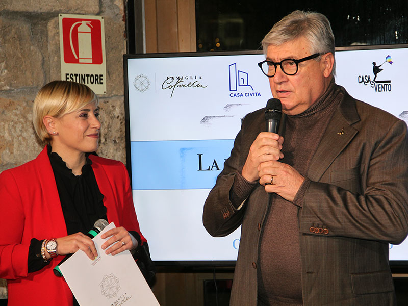 L'incontro è stato presentato e moderato da Enrica Cotarella supportata dal giornalista Angelo Mellone, scrittore e vicedirettore di Rai 1.