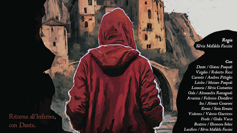 Ogni giorno quattro rappresentazioni di ‘E quindi uscimmo a riveder le stelle’: alle ore 16:30, 18:00, 19:30 e 21:00. Un percorso intimo ed esclusivo per piccoli gruppi di spettatori tra le vie della “città che muore”. Un’esperienza teatrale che porterà i partecipanti a confrontarsi con i cerchi infernali e i dannati che li abitano e che punta a coinvolgere il pubblico in un viaggio emozionante tra le frasi e i protagonisti dell’Inferno della Divina Commedia.